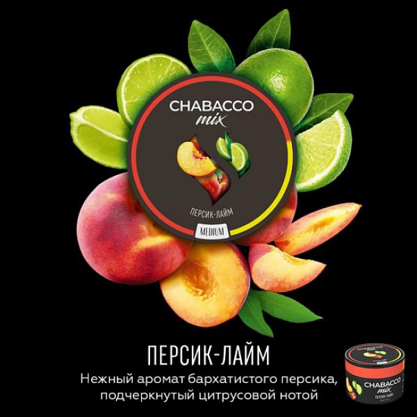Купите Смесь Chabacco Mix Peach lime 50 грамм по цене 279 руб. с доставкой в Ханты-Мансийск от сети кальянных магазинов ИванКальян.РУ.
