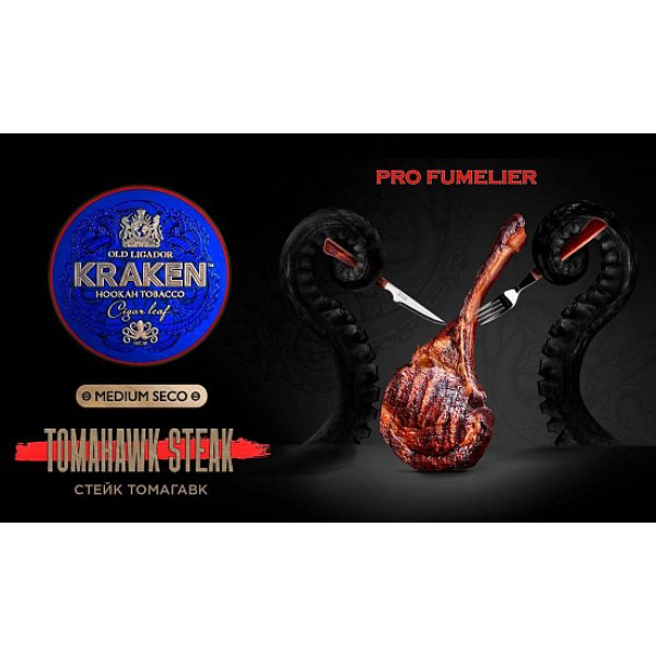 Купите Табак Kraken TOMAHAWK STEAK (СТЕЙК ТОМАГАВК) PRO FUMELIER 30 грамм по цене 829 руб. с доставкой в Ханты-Мансийск от сети кальянных магазинов ИванКальян.РУ.