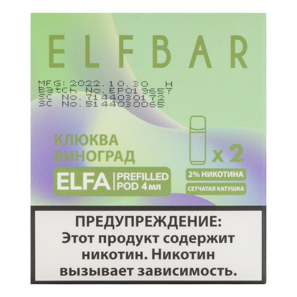 Купите Картридж Elfbar X2 Elfa 20 Мг 4 Мл Клюква Виноград по цене 1 490 руб. с доставкой в Ханты-Мансийск от сети кальянных магазинов ИванКальян.РУ.