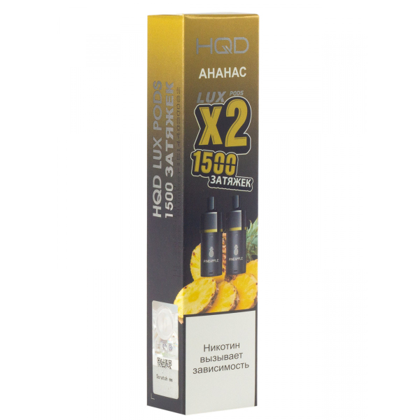 Купите Картридж HQD LUX PODS Ананас (2шт) по цене 1 290 руб. с доставкой в Ханты-Мансийск от сети кальянных магазинов ИванКальян.РУ.