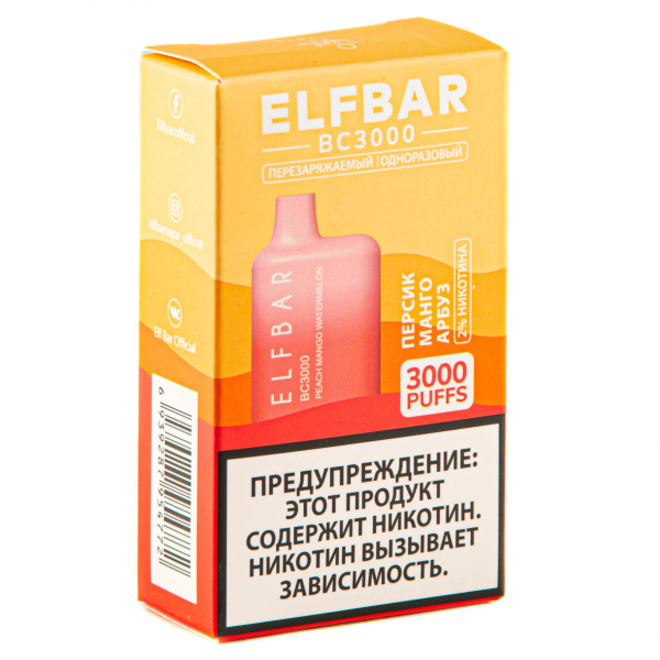 Купите ELF BAR Peach Mango Watermelon (3000 затяжек) 20 мг по цене 1 790 руб. с доставкой в Ханты-Мансийск от сети кальянных магазинов ИванКальян.РУ.