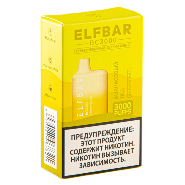 Купите ELF BAR Pineapple Ice (3000 затяжек) 20 мг по цене 1 790 руб. с доставкой в Ханты-Мансийск от сети кальянных магазинов ИванКальян.РУ.