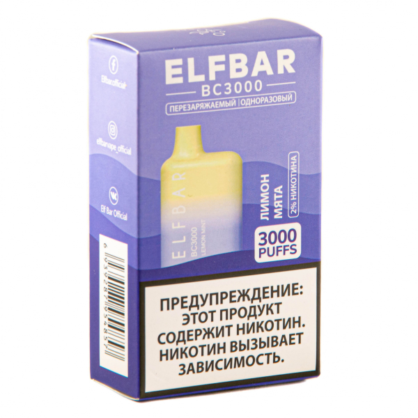 Купите ELF BAR Lemon Mint (3000 затяжек) 20 мг по цене 1 790 руб. с доставкой в Ханты-Мансийск от сети кальянных магазинов ИванКальян.РУ.