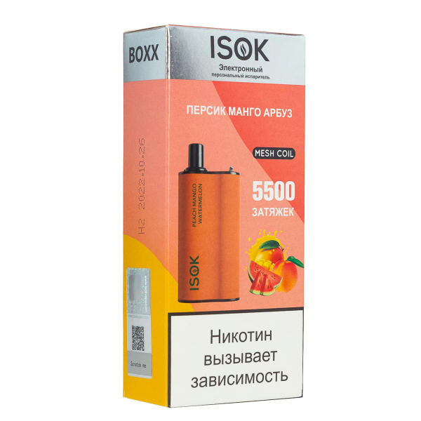 Купите Isok Boxx Персик Манго Арбуз (5500 Затяжек) по цене 2 790 руб. с доставкой в Ханты-Мансийск от сети кальянных магазинов ИванКальян.РУ.