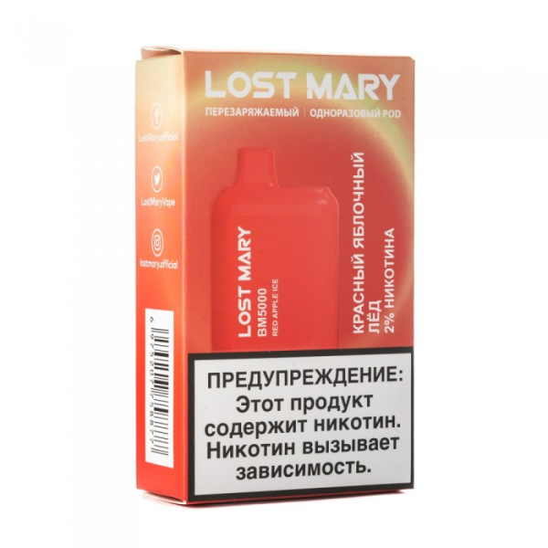 Купите Lost Mary Red Apple Ice Красный яблочный лед, 5000 тяг по цене 1 190 руб. с доставкой в Ханты-Мансийск от сети кальянных магазинов ИванКальян.РУ.