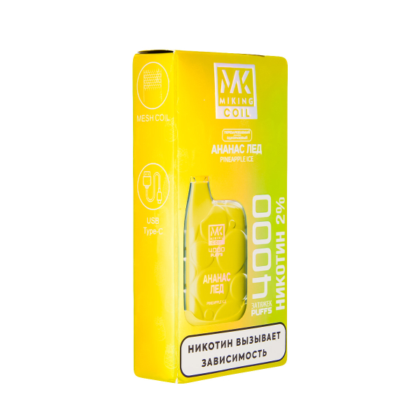 Купите электронная сигарета Miking Ананас Лёд 4000 по цене 1 090 руб. с доставкой в Ханты-Мансийск от сети кальянных магазинов ИванКальян.РУ.