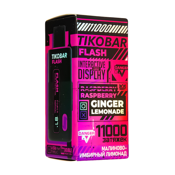 Купите Электронка Tikobar Flash Малиново-Имбирный Лимонад 11000 Затяжек по цене 3 590 руб. с доставкой в Ханты-Мансийск от сети кальянных магазинов ИванКальян.РУ.