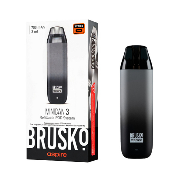 Купите POD-система Brusko Minican 3 черный,серый по цене 990 руб. с доставкой в Ханты-Мансийск от сети кальянных магазинов ИванКальян.РУ.